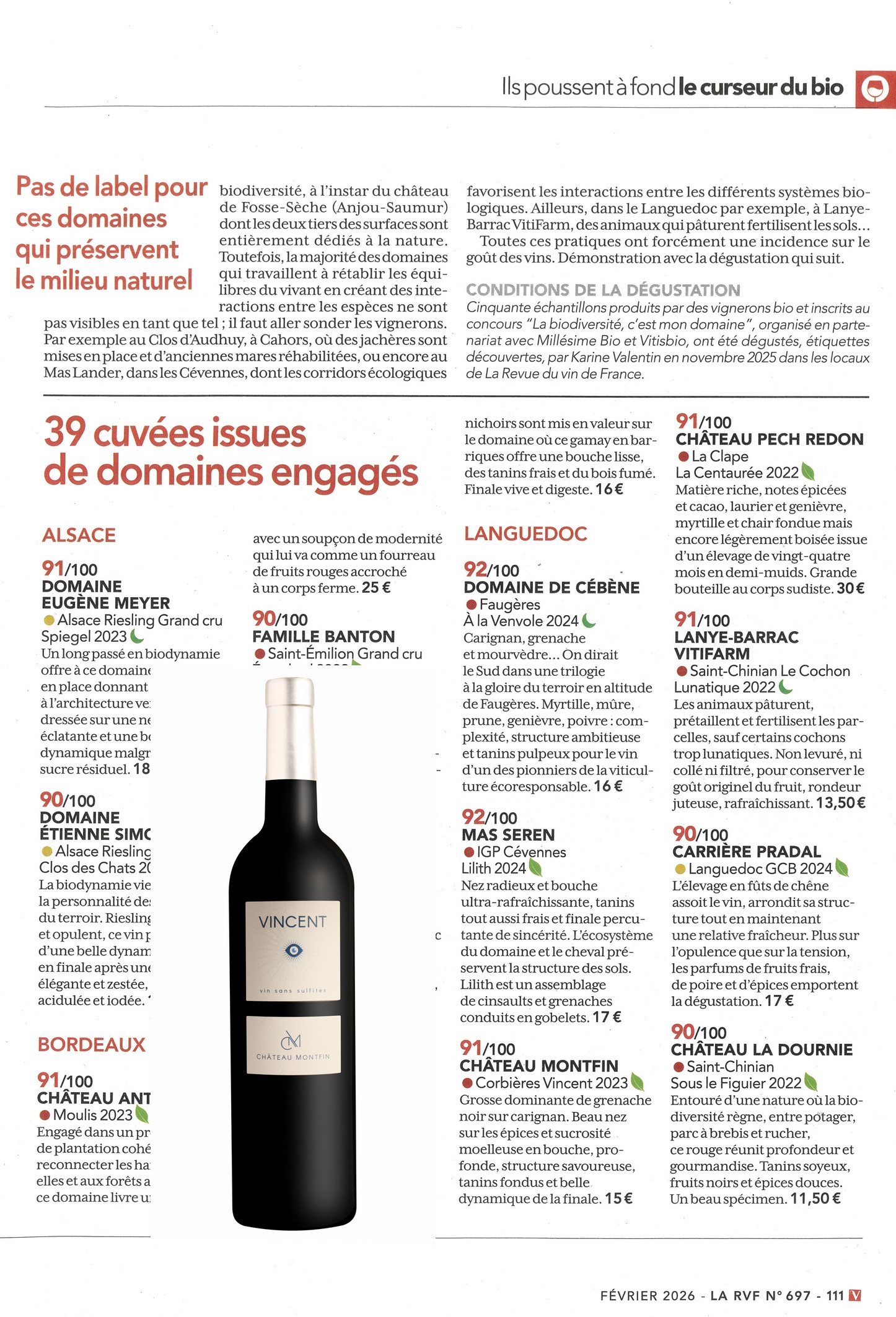 Une belle reconnaissance pour la cuvée Vincent dans la RVF!